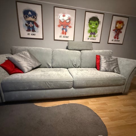 Ikea fåtölj tomelilla med tillhörande fotpall i blågrått sammets-tyg. Klädseln är ny och i princip oanvänd. Förvaring i fotpallen. Katt finns i hemmet.