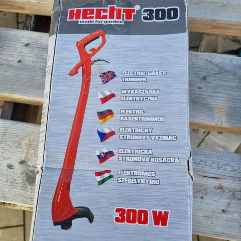 Batteridriven grästrimmer i röd och silver färg. Trimmern har teleskopiskt skaft i metall med plastdetaljer och ett trimmerhuvud anpassat för kantklippning och finputsning av gräsmatta. Passar för trimning runt rabatter, staket, träd och andra svåråtkomliga områden i trädgården. Drivs av löstagbart batteri (batteri och laddare kan behöva köpas separat beroende på utförande).