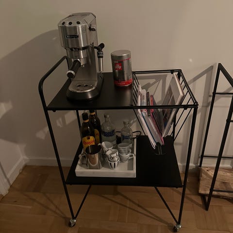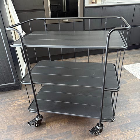 Säljer en stilren serveringsvagn i svart metall. Perfekt som barvagn, sidobord eller extra förvaring.