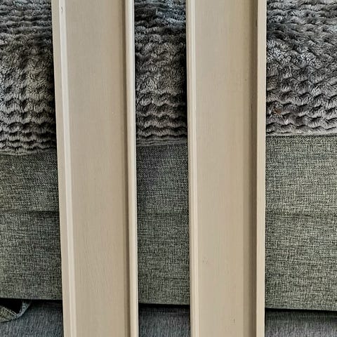 Två delar som gör en lång tavelhylla i aluminium fin och stilren
