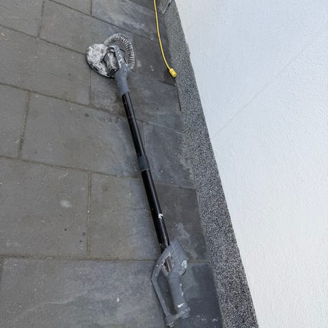 Meec vägg- och takslip med teleskopskaft i blå färg. Elansluten slipmaskin med runt sliphuvud och dammutsug. Levereras med flera runda slippapper och originalkartong enligt bild. Lämplig för slipning av väggar och tak inomhus, exempelvis spackel och gipsskivor.