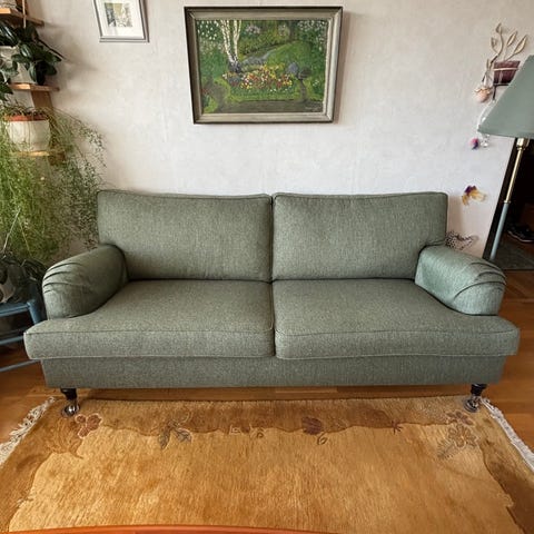 Soffan är en tresits i bra skick, och är både bekväm och tidlös i sin design.