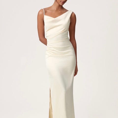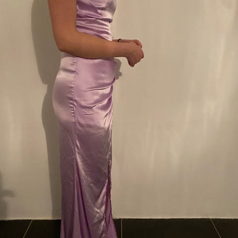 Adoore festklänning för dam i storlek 36. Klänningen är lila och tillverkad i polyester. Modellen är lång med smala axelband och draperad ringning framtill. Tyget har lätt glans och draperingar längs sidan som ger en figurnära passform. Passar för fest och andra mer uppklädda tillfällen.