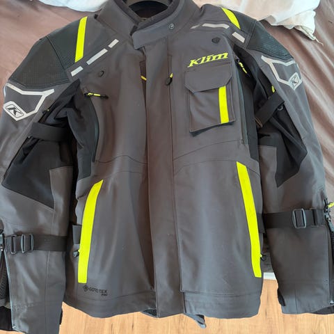 Richa mc-jacka i textilmaterial i grå färg med gula detaljer, jackan har flertal lager som man enkelt kan ta bort. Jackan har hög krage, flera ytterfickor framtill samt justeringsmöjligheter i midja och ärmslut. Ventilationsöppningar med dragkedja finns både fram och bak för ökad luftcirkulation vid körning. Reflexdetaljer på rygg och ärmar för bättre synlighet. Passar för motorcykelåkning i varierande väderförhållanden.