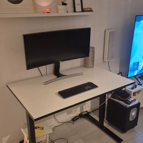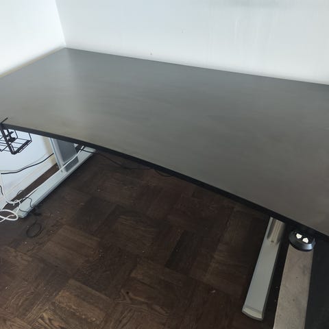 Fint höj- och sänkbart skrivbord med elektrisk motor för att höja och sänka bordet.