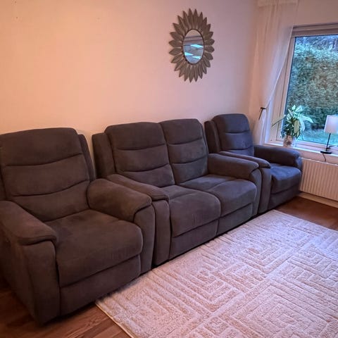 Soffgrupp 2 fåtöljer + 3-sitts soffa. Elrecliner