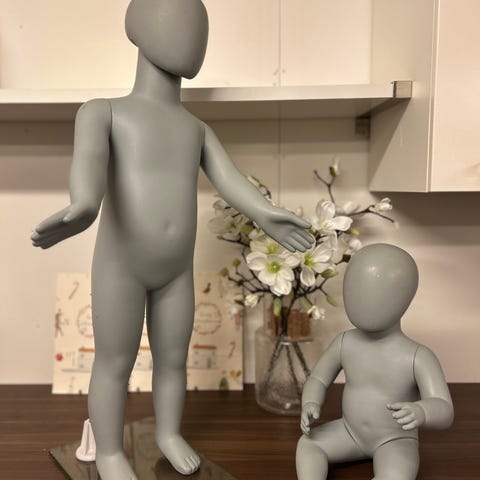 Säljer två realistiska barndockor, perfekta för butik, skyltfönster, klädvisning eller studio.