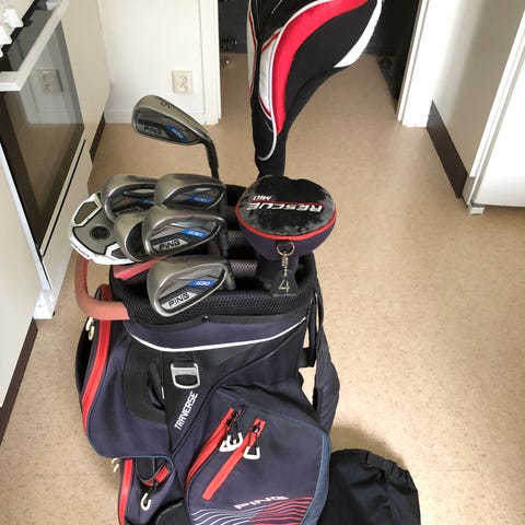 Klubborna är anpassade för barn 5-8 år. Köptes som ett set innehållande golfbag, driver, short Iron, wedge och putter.