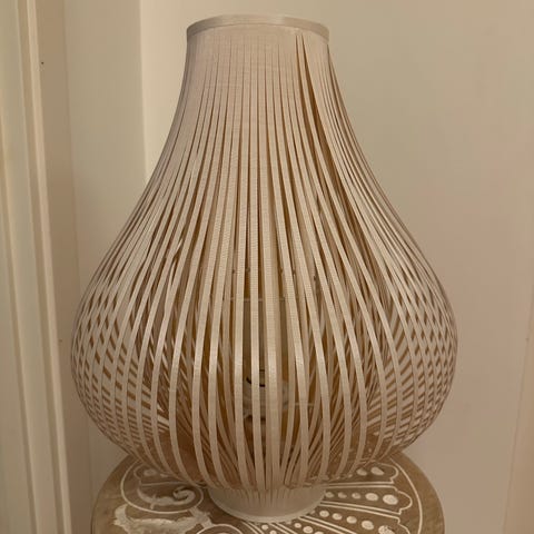 Vacker bordslampa i glas med vit skärm.