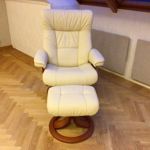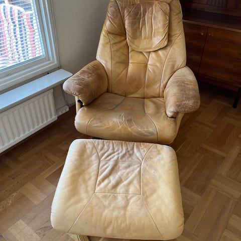 Ställbar lutning. Himla bekväm att sitta eller halvligga i
