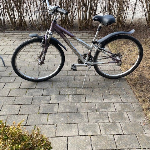 Crescent barncykel med 26" hjul i röd färg. Utrustad med pakethållare bak, skärmar fram och bak, handbromsar och växlar. Passar äldre barn eller ungdomar som behöver en cykel för vardagscykling till skola och fritidsaktiviteter.