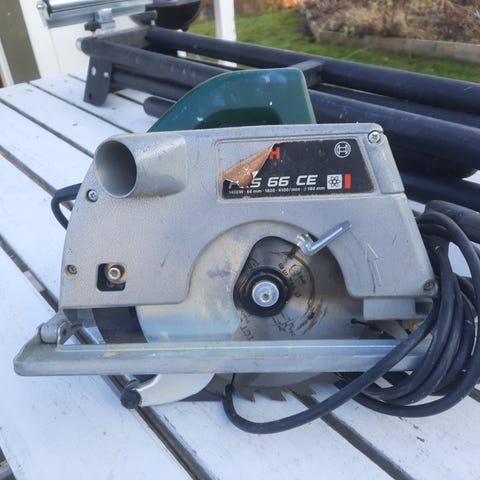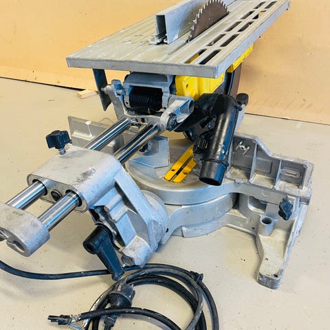 ELU kombisåg med funktion som både bordsåg och kap-/gersåg. Sågen är monterad på stativ med fyra ben och har ett bord i metall med integrerad anhålls- och vinkelinställning. Maskinen drivs med el via nätkabel. Sågklingan är monterad i en överdel som kan användas för kap- och gersågning, samtidigt som bordet kan användas för längdsågning av virke och skivmaterial. Passar för träbearbetning i verkstad eller på byggarbetsplats där både kapning och klyvning behövs i samma maskin.