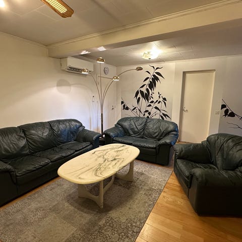 Läder soffgrupp mörkt grön ..bra skick .bilig med 3 soff bord 1000 kr .utan bord