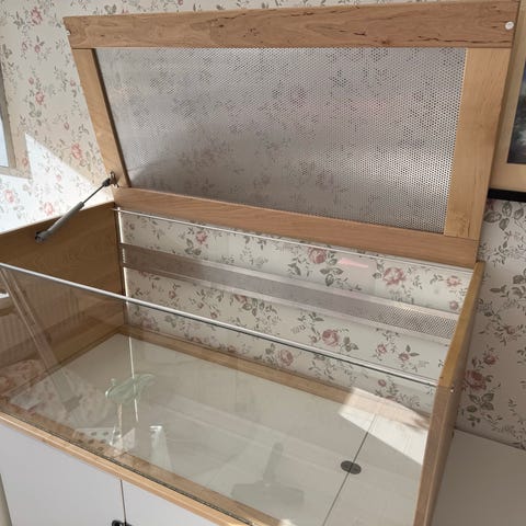Letar du efter en speciell bur till ditt husdjur? Den här unika, handgjorda buren öppnas smidigt uppåt och har tidigare använts för en dvärghamster. Den kan även passa för kaniner och marsvin.