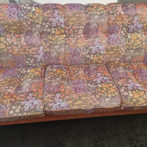 Äldre smidig bäddsoffa bortskänkes. Ryggen fälles upp och bäddmadrass rullas fram. Under soffan finns gästsäng som dras ut o sedan fälles upp på ben. Sitttyget slitet men inte trasigt. Fjädern som håller upp soffryggen när man sover har bytts ut varför tyget inte idag täcker skruvarna, se bild. Soffan finns att hämta i Klockhammar från o med Påskdagen