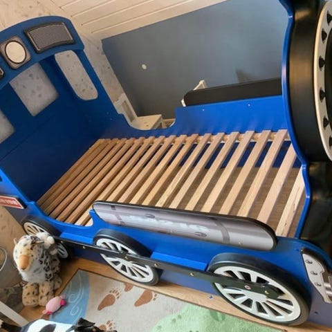 Jätte fint skick. Haft madrasskydd på under hela tiden. Lamporna fram behöver nya batterier men dom är fungerande.