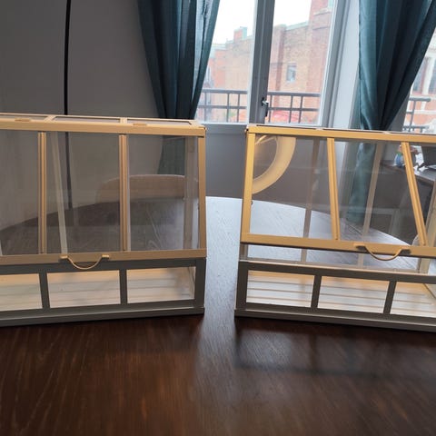 Taket kan öppnas (två luckor) för enkel åtkomst och ventilation, vilket gör det idealiskt för att skapa ett bra klimat för små plantor eller för att dekorera med blockljus och växter.