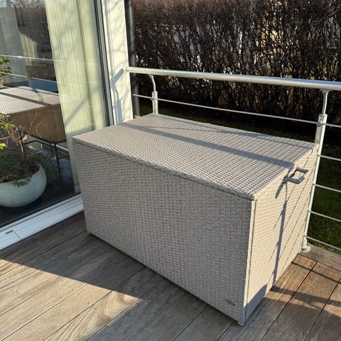 Stor och rymlig dynbox i bra skick. Perfekt för förvaring av dynor, filtar eller annat på balkong/uteplats.