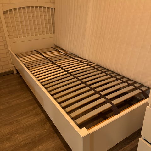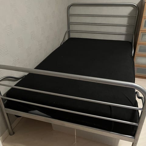 IKEA enkelsäng med madrass metall grå