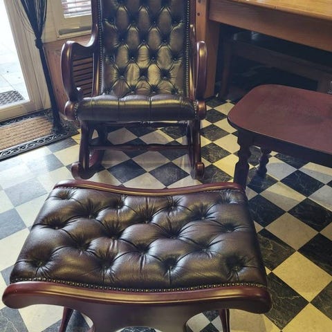 Gröna fåtöljer med trädetaljer