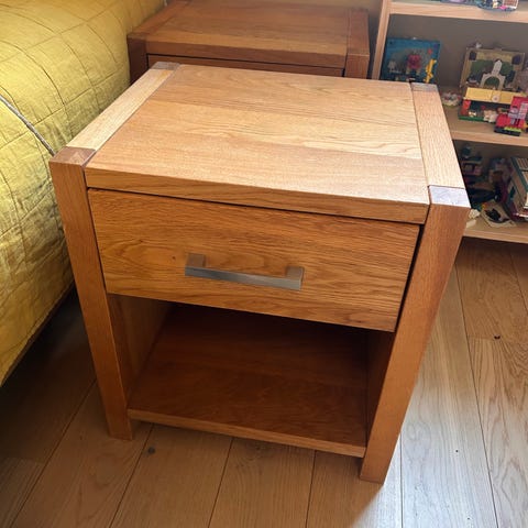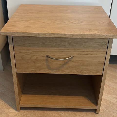 Snygg och rejäl hallmöbel. Dock behöver den skruvas ihop. De två översta lådorna har jackat ur sina sidofästen, men kan fixas ganska lätt om man har tid och lust.