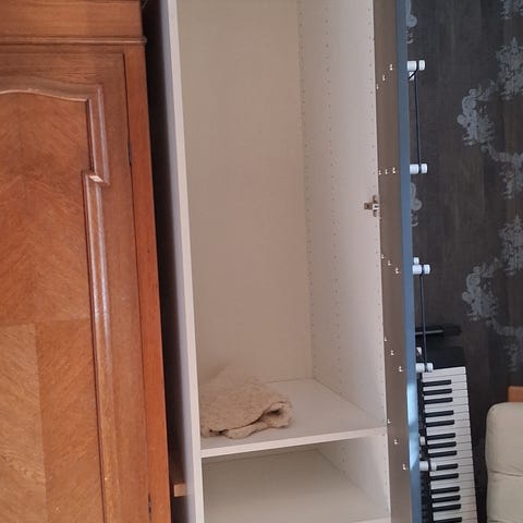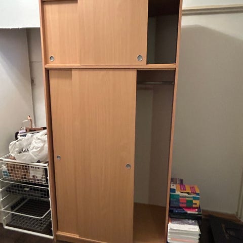Smart garderobsförvaring med hyllor och hängning. Har några enstaka skönhetsfläckar/slitage men kan enkelt fixas eller ej synligt fram.