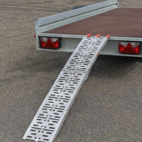Last- och körbanor i aluminium avsedda för lastning och lossning av fordon, exempelvis motorcykel eller fyrhjuling, på släp eller flak. Ramperna har perforerad och mönstrad yta för bättre grepp. Passar för användning där en stabil och halkreducerande ramp behövs vid körning upp på en högre nivå.