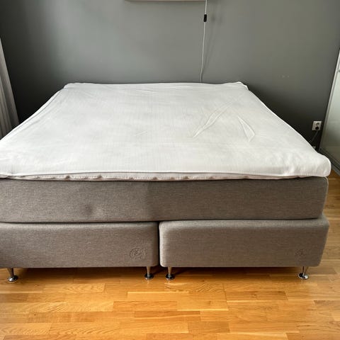 Jensen kontinentalsäng i mörkgrå klädsel Jensens kvalitet genomsyrar varje detalj, från stabila ben till rejäl boxfjädring och bekväm bäddmadrass. Sänggavel ingår. Bra skick. Hårdhet mellan till mjuk.