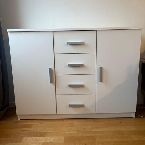Vit skänk med lådor och skåp bortskänkes. Hämtas i centrala Partille. Ta med bärhjälp då den står på 2a våningen