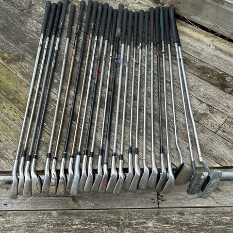 Diamond Prestige golfklubbor set. Setet består av flera järnklubbor samt några träklubbor. Järnen har metallhuvuden med Diamond Prestige‑märkning och skaft i metall. Träklubborna har klassiska klubbhuvuden i träutseende med metallskaft. Passar för golfspelare som vill ha ett komplett set med både järn och trä för spel på bana eller träning på range. Lite gamla men går rätt så bra att spela med hoppas ni får kul.