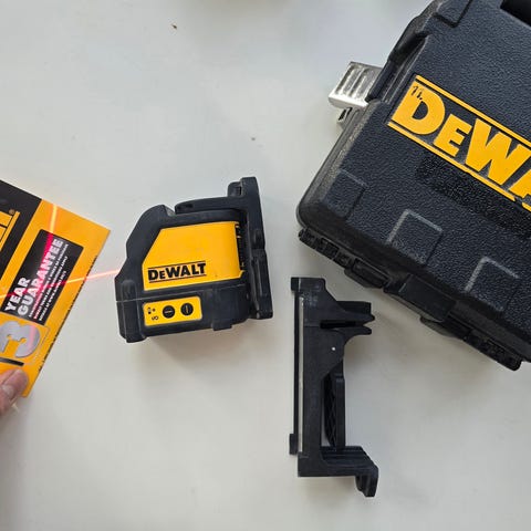 DeWalt laserverktyg med grön korslaser. Verktyget projicerar tydliga gröna linjer i kors för mätning och uppriktning vid bygg- och renoveringsarbeten. Passar för exempelvis montering av hyllor, kakel, skåp och andra installationsarbeten där raka linjer och noggrann nivå krävs. Levereras med batteri och laddare enligt bilden.