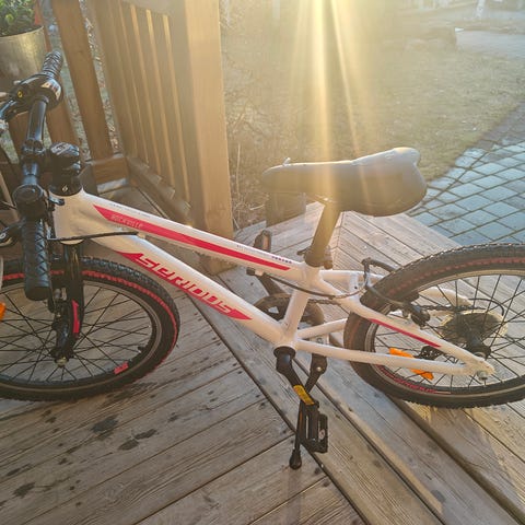 Mountain bike med 6 växlad drivlina från Shimano, 20 tum. Skivbromsar både bak och fram. Stötdämpare fram. I fint men använt skick. Har förvarats inomhus året runt (aldrig stått ute i regn eller snö).