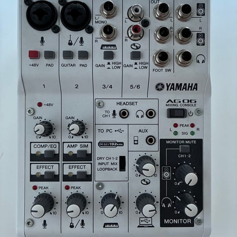 Yamaha AG03 ljudmixer och USB-ljudinterface i vit färg.