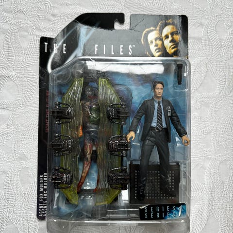 Super7 Ghost figuren levereras i originalförpackning med tryck som liknar en sedel och illustrerad baksida. Lämplig som samlarfigur eller prydnad för hylla eller skrivbord. Plastförpackning med figur och tillbehör synliga på framsidan.