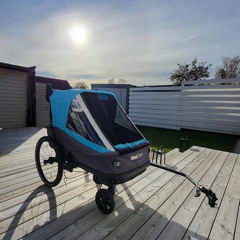 Kan användas både som cykelvagn eller promenadvagn och passar perfekt för syskon.