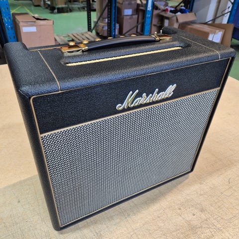 Marshall Class 5 gitarrförstärkare kombo i svart. Rörförstärkare avsedd för elgitarr, med toppmonterat kontrollpanel. Reglage för volym, bas, mellanregister och diskant.