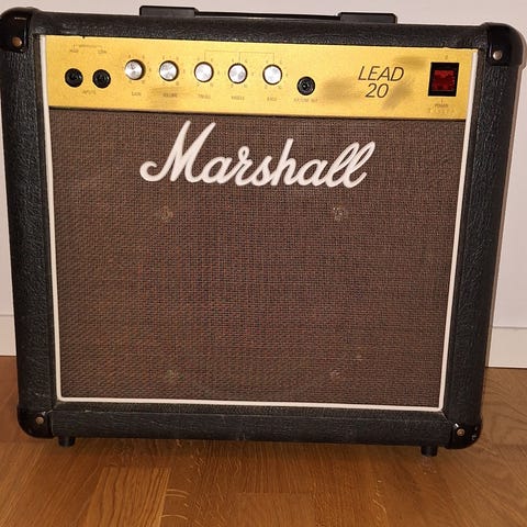 Riktigt välljudande (och snygg) 5-wattare med rejält med headroom! Tar pedaler bra (säljer även sådana - spana min min andra annons!), och bra crunch när man skruvar upp volymen. Helrör!