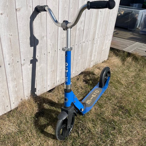Grabben säljer sin sparkcykel då han vuxit i från den.