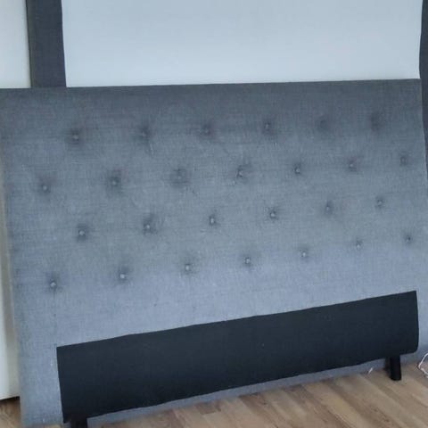 &Tradition sänggavel i mörkgrå textil. Gaveln har en rak, vadderad front med två lösa, avlånga kuddar upptill som ger extra stöd för rygg och huvud. Passar som huvudgavel till säng och kan användas i sovrum där man önskar en mjuk textil yta bakom sängen.