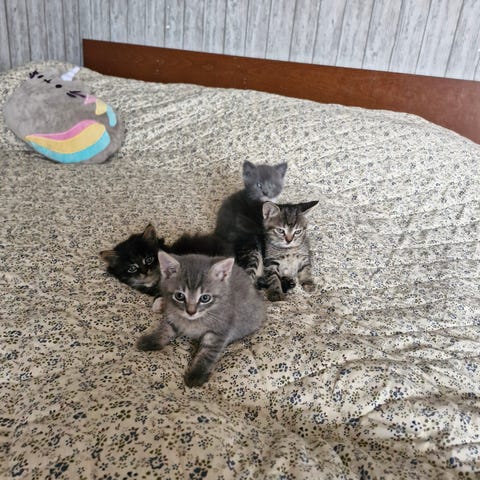 Fyra gosiga kattungar säljes, en hona och tre hanar. De är födda 1 november 2025. De är redo att flytta från och med 26 mars. Då har de hunnit besöka veterinären och blivit chippade, vaccinerade och kollade. Vi säljer dem gärna två och två. Får de möjlighet att komma ut är det toppen. Viktigast av allt är att de kommer till ett djurvänligt hem.