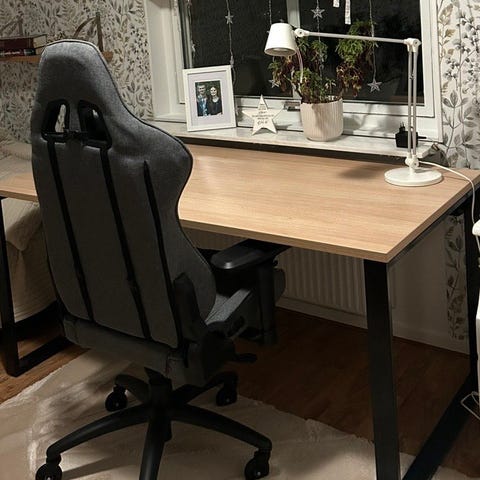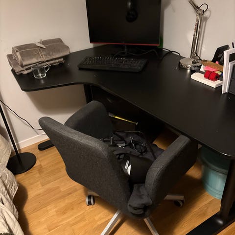 Stolen superskön att sitta i. Svart tyg med svart detaljer i pu-läder.