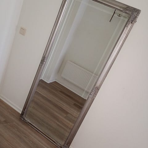 Spegel med vit träram.