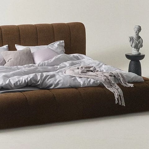 One of special beställt 160 sängram i körsbär trä med flätad huvudgavel. Ramen är avsedd för en resår- eller ribbotten och madrass i passande storlek.