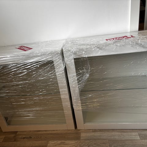 Ikea Bestå skåp och vitrinskåp säljes pga flytt. Hyllor och glashyllor ingår (vaser och lösöre ingår ej). Mycket rymliga, gott om förvaringsutrymme. Väldigt gott skick. Mått för skåpen är (cm): 41 djup, 192 höjd, 120 bredd (dvs totalt 240 bredd för helheten). Båda skåpen säljs som helhet för totalt 1300kr. (Nypris över 9000kr)