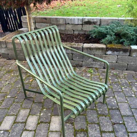 Hay Palissade utemöbler i serien Palissade. Setet består av bord, diningbänk och stolar i färgen olivgrön. Det ingår även en extra stol i setet. Även tillhörande dynor ingår för diningbänken samt stolarna med armstöd. Möblerna är tillverkade i pulverlackerat stål med ribbad sits och bordsskiva, anpassade för utomhusbruk på altan, balkong eller trädgård. Passar som matgrupp eller loungegrupp utomhus.