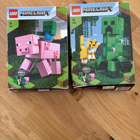 . Setet består av klossar för att bygga en Minecraft-inspirerad scen med bland annat en rosa grisstruktur, figur och tillbehör. Passar för barn från 7 år enligt förpackningen och innehåller flera delar för att återskapa miljöer från spelet Minecraft.