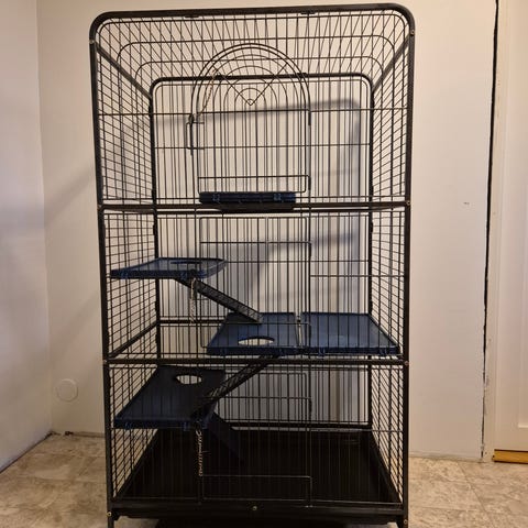 Smådjursbur som är (väldigt välbyggd) byggd av en möbelsnickare i massivt trä. Vi har använt den till degus men funkar utmärkt till tex råtta, chinchilla fågel och andra smådjur. 4 stora luckor, 2 hyllplan.