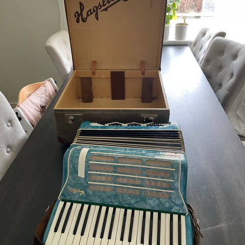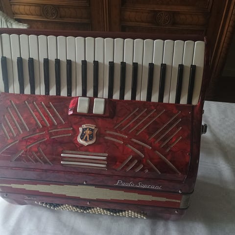 Excelsior dragspel i svart utförande. Dragspel med knappar på både diskant- och bassida. Kroppen är i lackerad finish med metallgaller och remfästen. Passar för spel i olika musikstilar och sammanhang där ett knappdragspel önskas.Nyskick helt genomgånget fin ton , tät bälg