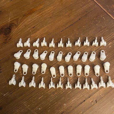 Gardinstänger ringar med klämmor i beige plast. Ringarna har metallklämmor för upphängning av gardiner. Passar för användning på gardinstång där gardinen fästs med klämma i nederkant av ringen. Antal ringar enligt bild. 10 st är lika och 3 st är lika. Innermått 4 cm i diameter.