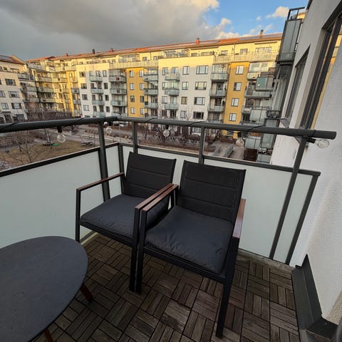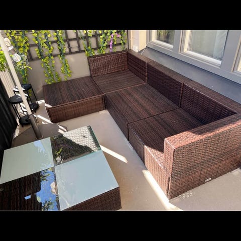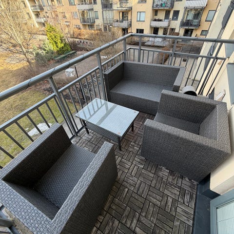 Skick: Mycket bra. Har alltid stått på en inglasad balkong. Har hittat lite skav, se bilder.